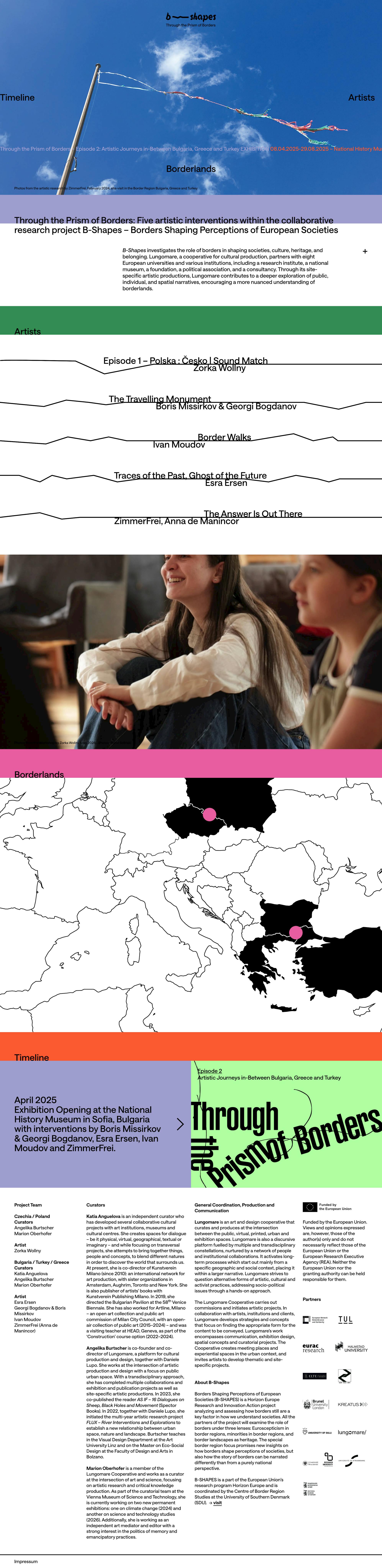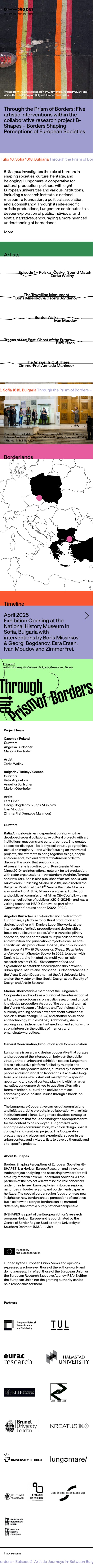 B-Shapes investigates the role of borders in shaping societies, culture, heritage, and belonging. Lungomare, a cooperative for cultural production, partners with eight European universities and various institutions, including a research institute, a national museum, a foundation, a political association, and a consultancy. Through its site-specific artistic productions, Lungomare contributes to a deeper exploration of public, individual, and spatial narratives, encouraging a more nuanced understanding of borderlands.