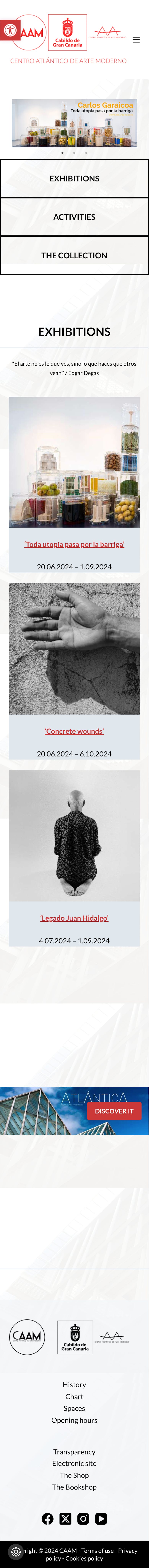 The CAAM, administered by the Gran Canaria Island Council, was first opened on 4th December 1989. CAAM’s first programme text already expressed the firm intention of combining two courses of institutional action in the cultural life of Canarian Society, namely to constitute itself as an Art Centre in which the most current artistic debates could be collected and disseminated through various activities; and at the same time, to build a Museum of Contemporary Art that aspires to becoming an incontrovertible point of reference for our historic memory through the creation of a permanent collection.