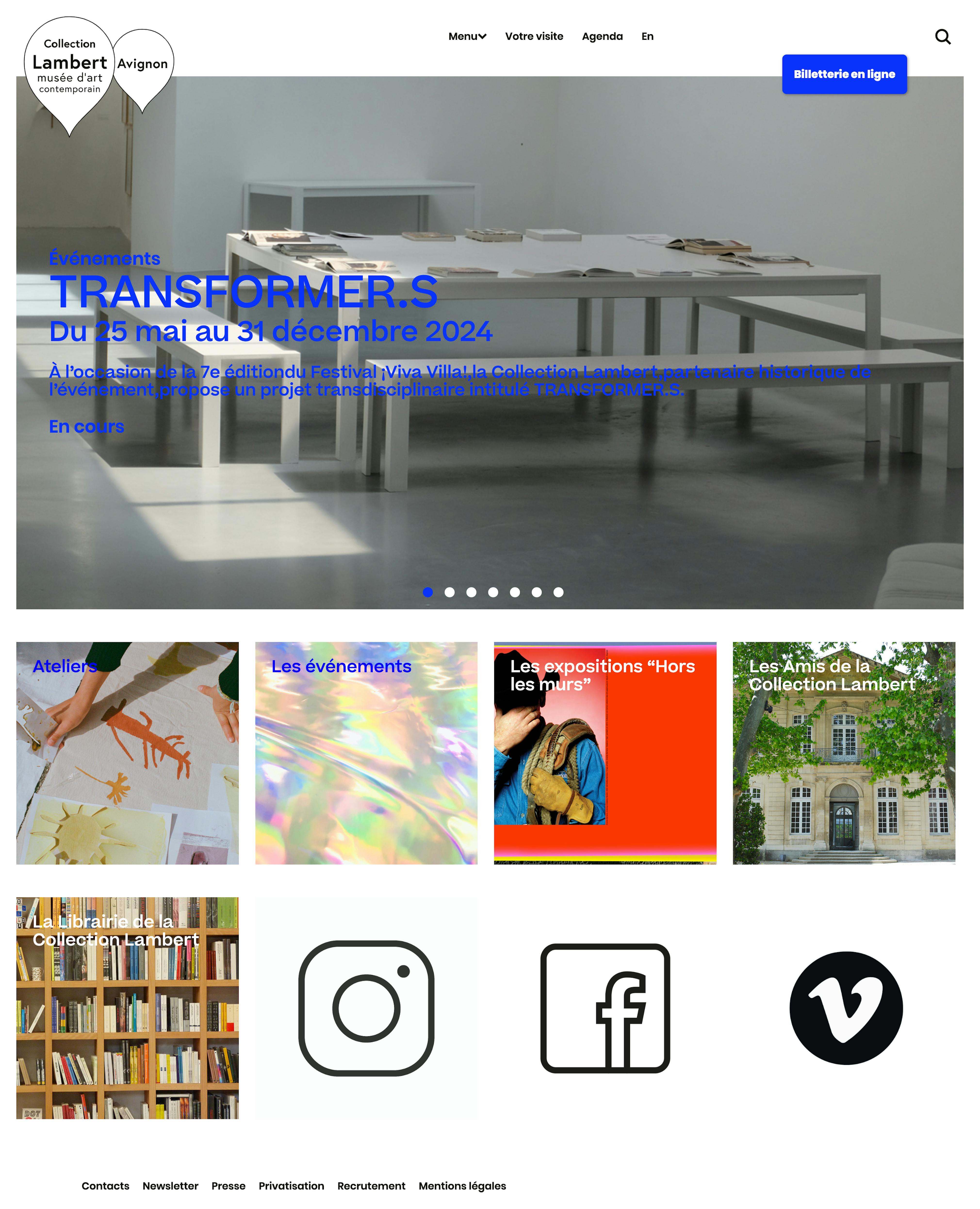 The Collection Lambert in Avignon is a unique contemporary art museum, the brainchild of the gallerist and art collector Yvon Lambert, who donated to the French State an exceptional collection of major works from the second half of the 20th century and the early 21st. Hosted across a pair of magnificent 18th-century mansions in the center of Avignon, the Collection Lambert regularly runs ambitious exhibitions and puts on a varied cultural and educational program supported by the State, the City of Avignon, the regional and departmental authorities, and private benefactors.