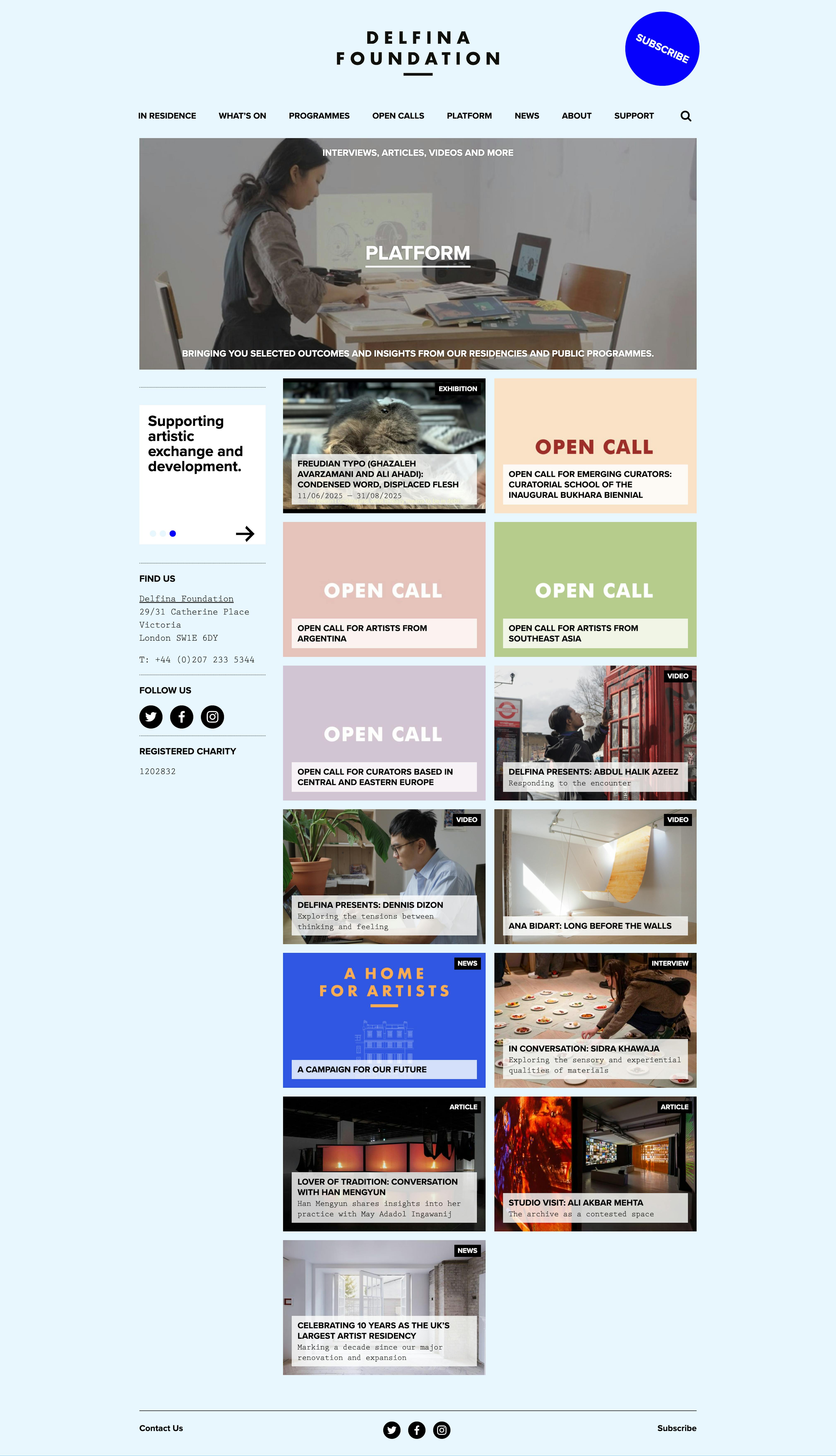 Based in the heart of London, Delfina Foundation is an independent, non-profit foundation dedicated to facilitating artistic exchange and developing creative practice through residencies, partnerships and public programming.