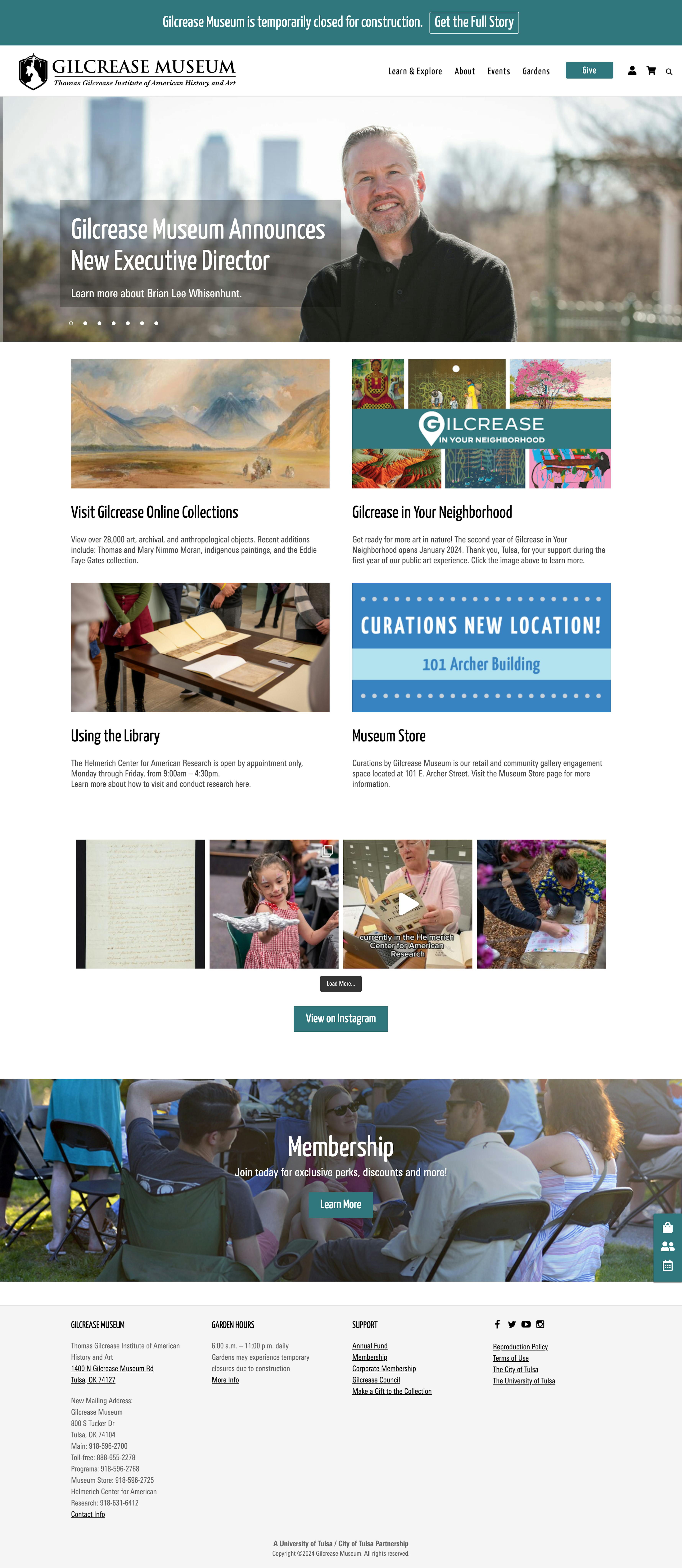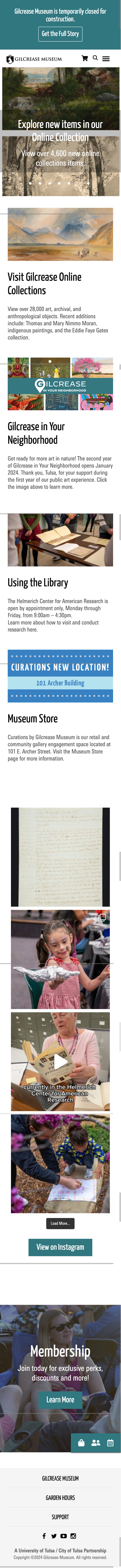 The Thomas Gilcrease Institute of American History and Art, known as Gilcrease Museum, houses a comprehensive collection of the art, culture and history of North America. Thomas Gilcrease, a citizen of the Muscogee Creek Nation, established Gilcrease Museum in 1949 in Tulsa, Oklahoma. Today the interdisciplinary collection contains more than 350,000 items. The museum represents hundreds of Indigenous cultures from across North and South America, with material culture and archaeology ranging from 12,000 BCE to the 21st century. The collection includes more than 350 years of American paintings, sculptures and works on paper, including the largest public holdings of art of the American West.