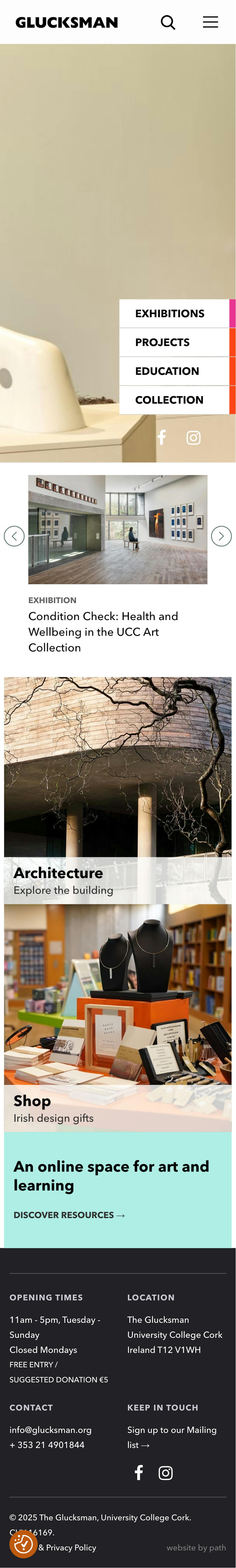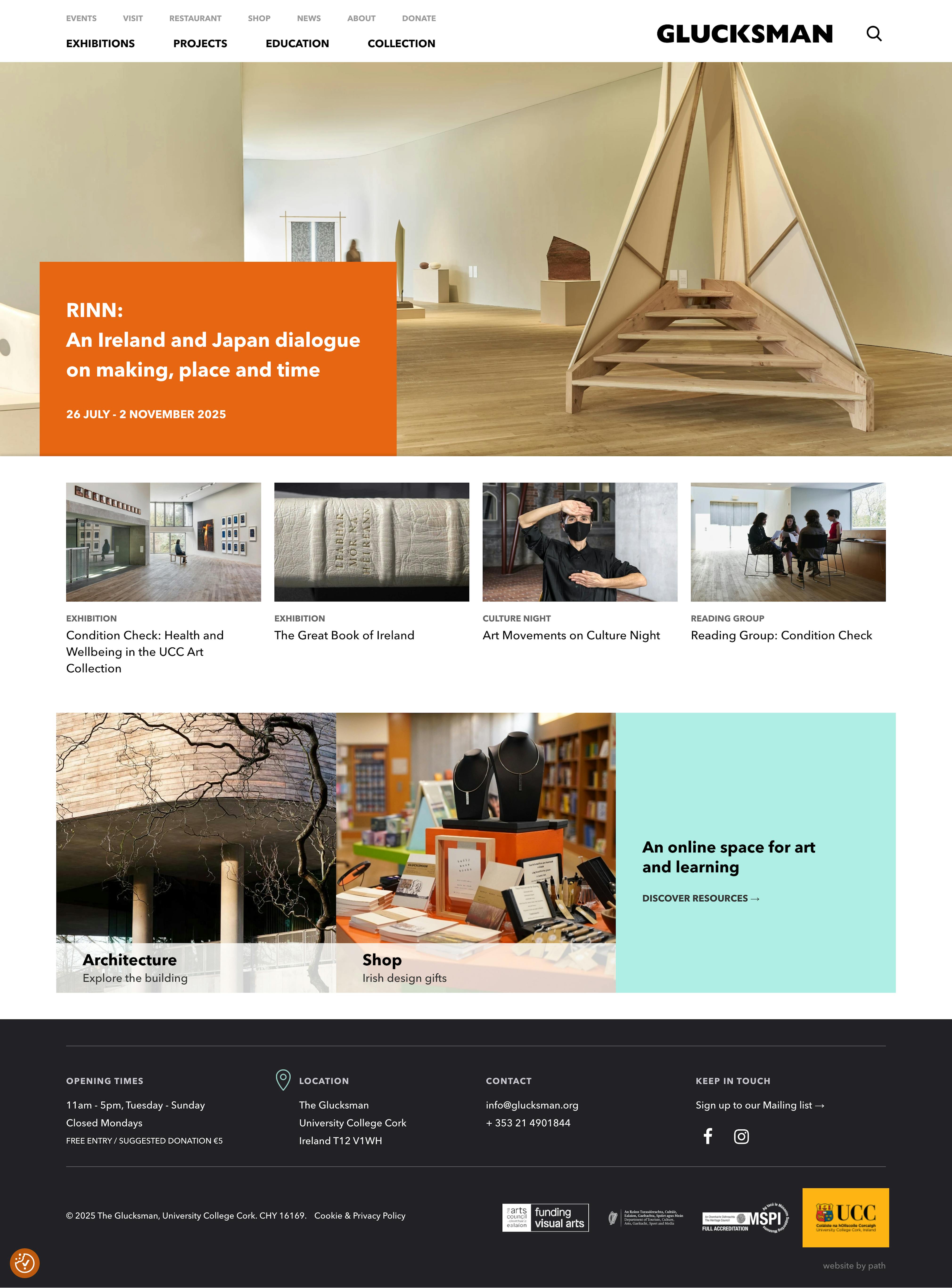 The Glucksman creates a welcoming space for future,current and graduate students of UCC to learn from art, and enriches the campus environment through the care and presentation of the UCC art collection. The culture of innovation and passion for access at UCC is embodied in the Glucksman’s curatorial and educational programmes and enables the University to nurture creative connections between people and disciplines.