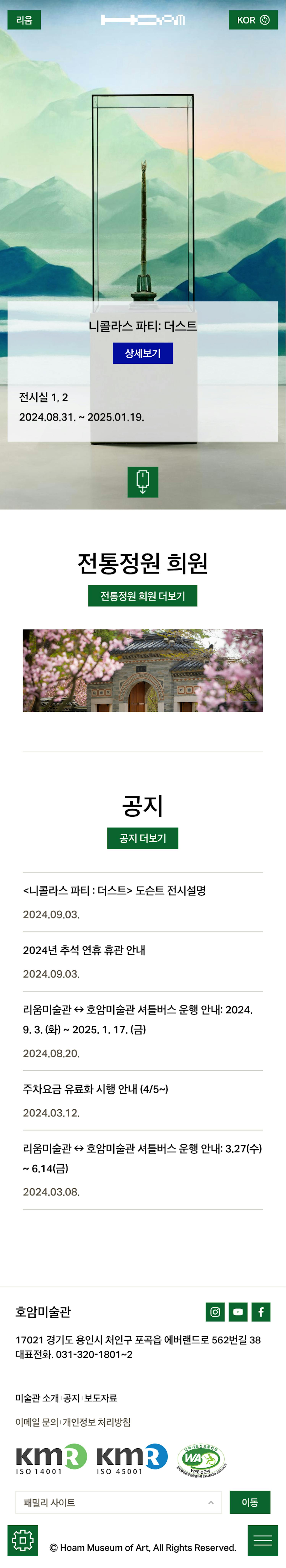 Ho-Am Art Museum is a private museum that opened on April 22, 1982, based on the Korean art collection of Ho-Am Lee Byung-chul, the founder of Samsung Group, over a period of 30 years. In accordance with the founder’s founding principles of wanting to provide our people with a dream of cultural creation and to be a place of living education for national culture, Ho-Am Art Museum hopes to be an educational venue where all visitors, from children to adults, students to experts, can discover creative values for the future through culture and art and develop insight into history and art. In addition, Ho-Am Art Museum is in harmony with the traditional garden, Heewon, which opened in 1997, so that you can experience the beauty of traditional landscaping as well as exhibitions. The traditional garden Heewon is a space created to show the beauty of traditional Korean gardens that are hard to find these days.