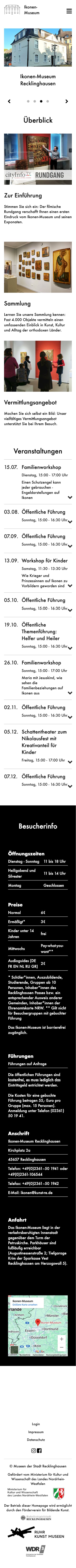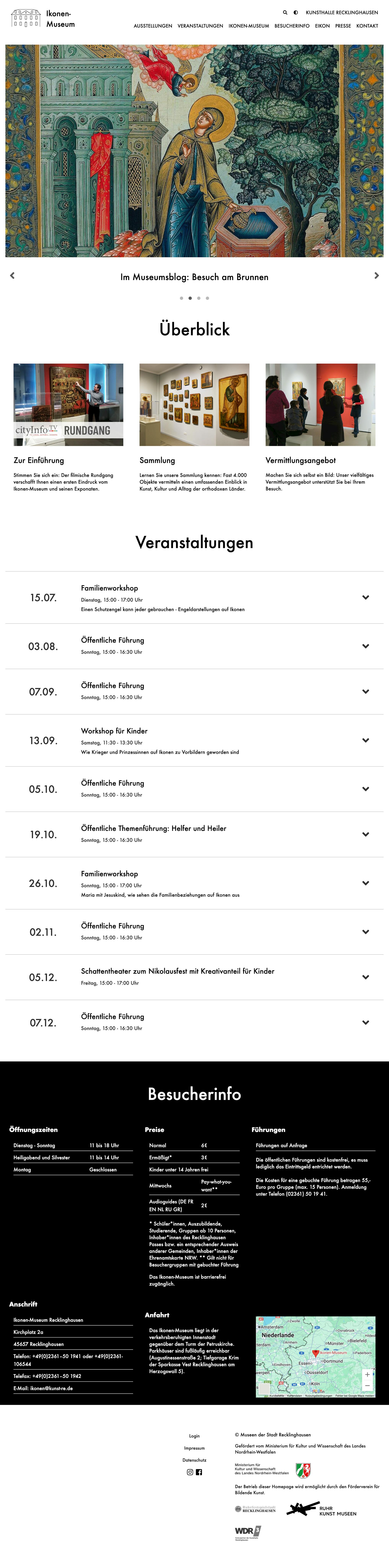 The unusual idea for establishing the Icon Museum in a city in the Ruhr region, then dominated by mining, arose during an exhibition of one hundred icons from private West German collections, which was shown at the Municipal Art Gallery in early 1955. At that time, the cult images of the Eastern Church were still virtually unknown, but the exhibition attracted an unexpectedly large number of visitors. When the initiator of the exhibition and then director of the Recklinghausen Art Gallery, Thomas Grochowiak (1914–2012), learned that the two most important German icon collectors, the Eastern European historian Prof. Dr. Martin Winkler (1893–1982) and the dermatologist Dr. Heinrich Wendt (1901–1956), were offering their collections for sale, he had a forward-looking idea: He wanted to acquire the icons for Recklinghausen and establish a museum for Eastern Church art. Just one and a half years after the exhibition, on July 21, 1956, the Icon Museum was opened in the former tower school, a building erected in 1795 opposite the provost church of St. Peter, in the heart of Recklinghausen's old town.