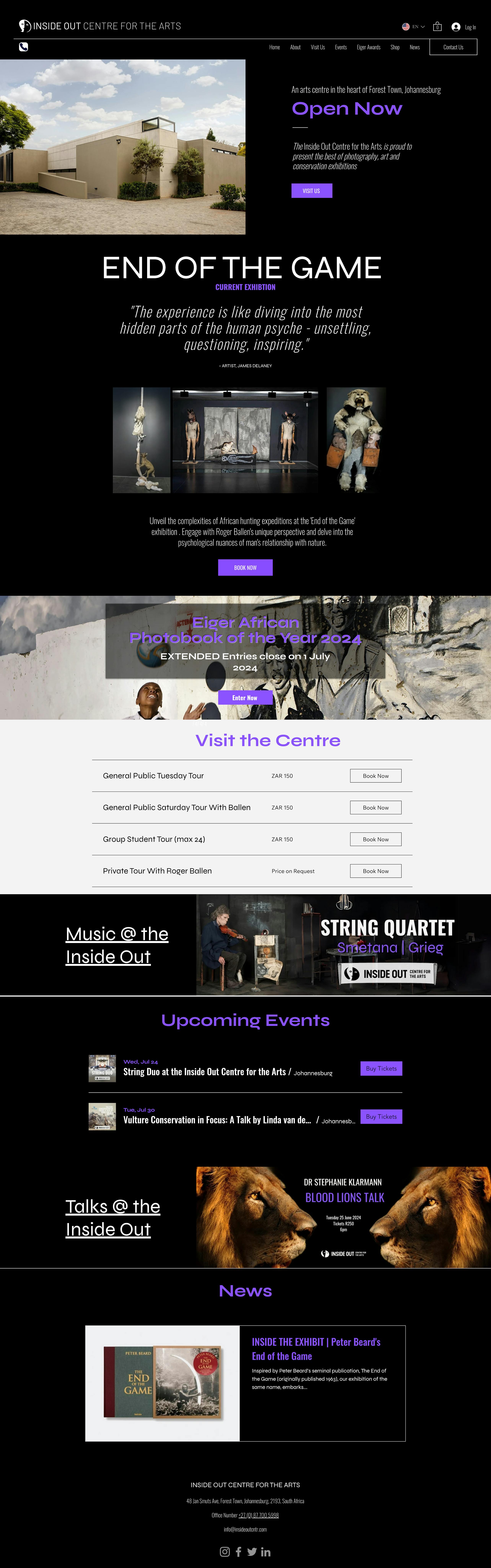 The Inside Out Centre for the Arts in Johannesburg's Forest Town was founded in 2023 by Roger Ballen. The centre is proud to present the best of photography, art and conservation exhibitions. The centre combines art exhibitions which explore African themes with educational talks and programs.