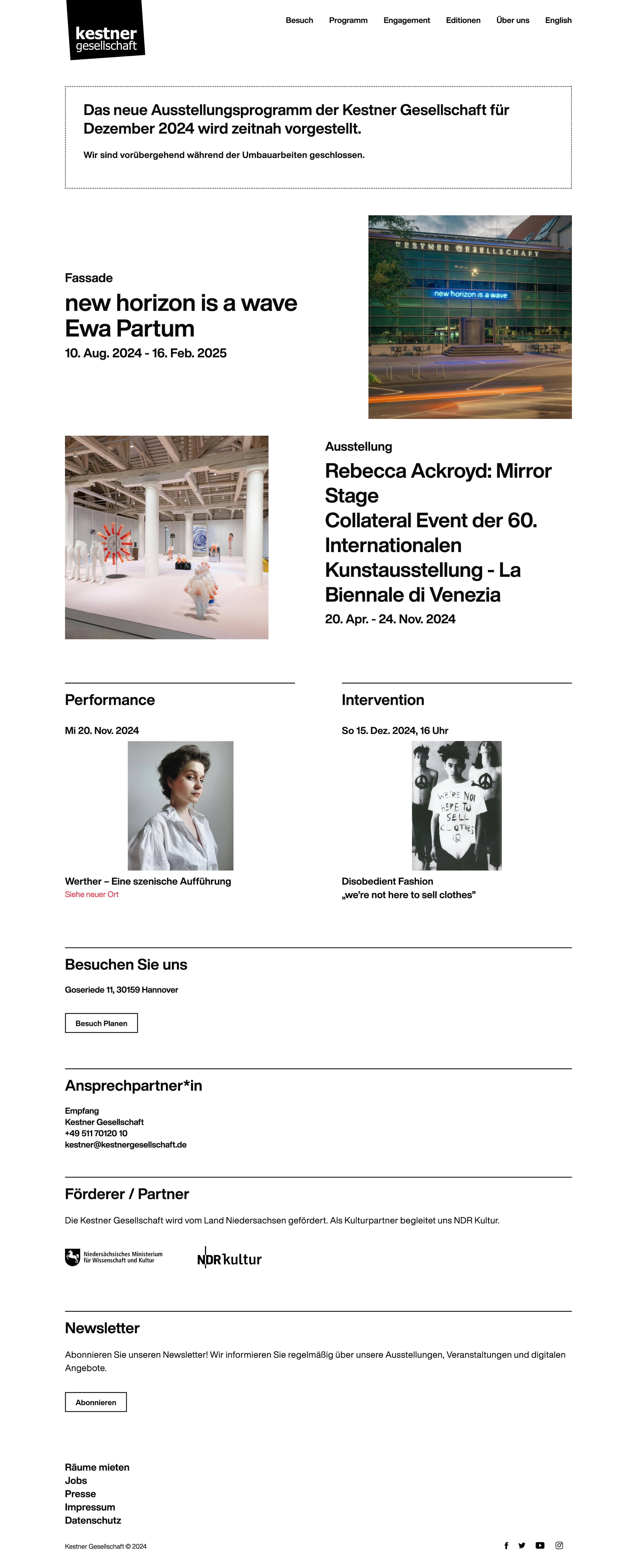 Contemporary, international, and diverse: The Kestner Gesellschaft is one of the largest art associations (German: Kunstvereine) in Germany. For over 100 years our aim has been to bring contemporary, international art to Hanover. The halls of the Goseriedebad, which once housed an indoor swimming pool, regularly host extensive group and solo exhibitions. With over 700 exhibitions to date, we have helped shape the art scene in Germany and abroad and are continually breaking new ground.