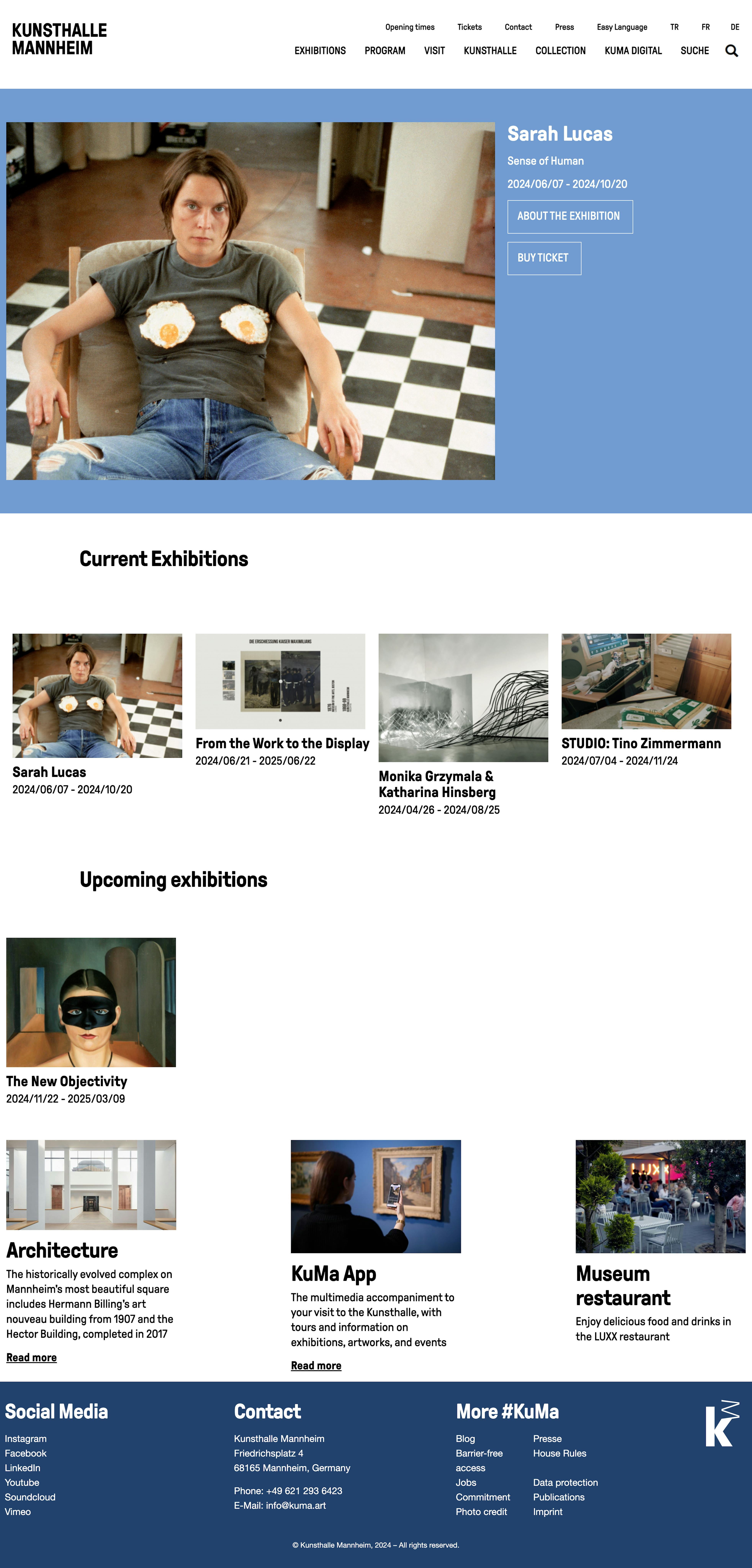 The Kunsthalle Mannheim, opened as a museum in 1909, is one of the first civic collections of modern art in the world. Epochal key works of painting from Édouard Manet to Francis Bacon as well as an outstanding collection of sculptures from modern to contemporary art characterize the museum's profile. In addition to maintaining the collection, the development of high-caliber exhibitions and provenance research are the main focuses of the Kunsthalle's academic work. The Kunsthalle Mannheim opens up both analogue and digital museum worlds. Whether it's the innovative project "From Work to Display", the museum app, graphic table or collection wall - the comprehensive digital offerings invite you to get active yourself and discover the Kunsthalle in a whole new way.