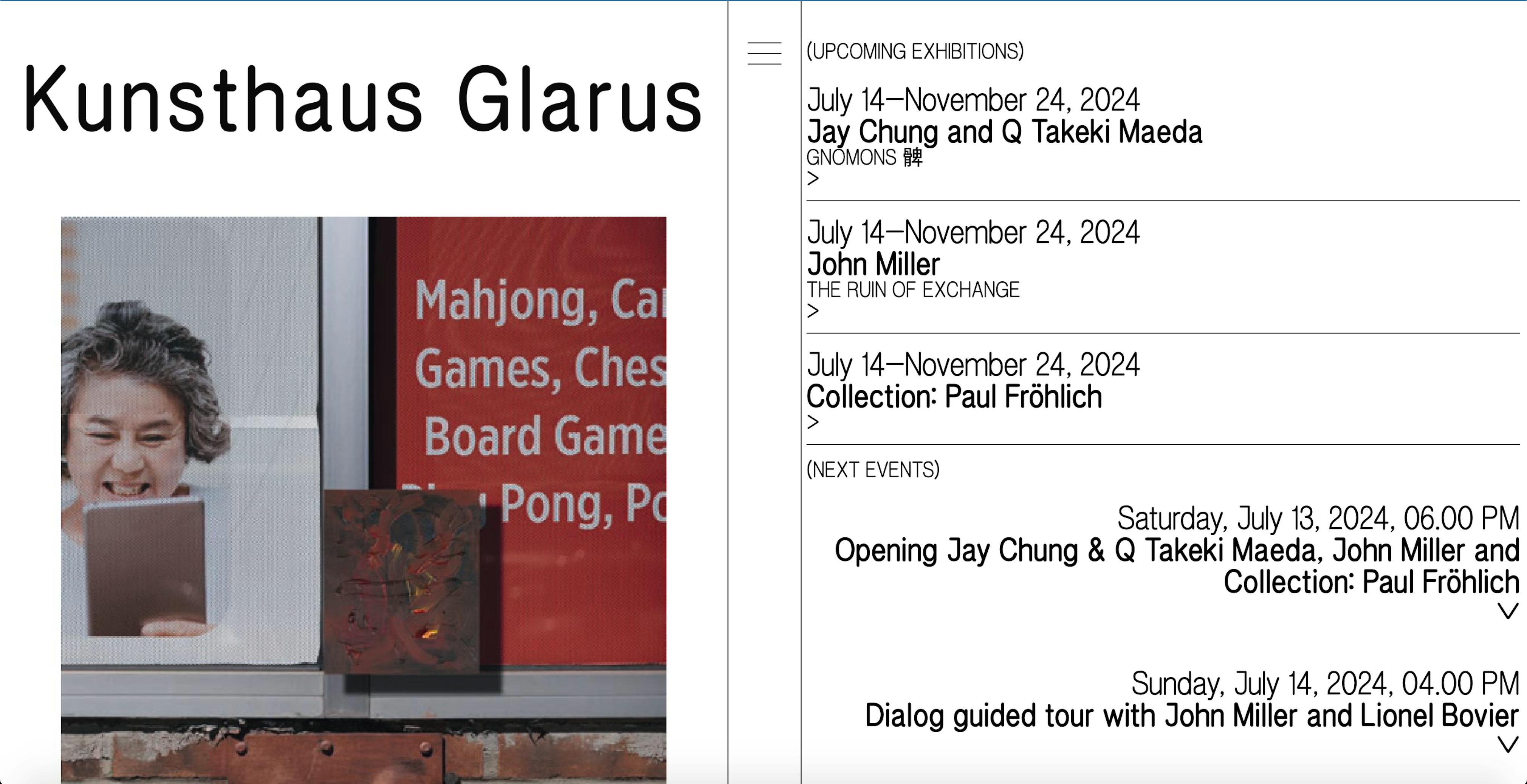 Kunsthaus Glarus provides a platform for the presentation of Swiss and international contemporary art and the collections of Glarner Kunstverein as well as regional artistic production. Since the mid-1990s, Kunsthaus Glarus has made a name for itself within the Swiss museum landscape and on the international art scene with incisive presentations of contemporary art positions and has become, despite its peripheral location, an important hub for contemporary Swiss art. Kunsthaus Glarus focuses in particular on following the creative output of a younger generation of artists who have not yet or have rarely shown in institutional contexts in Switzerland.