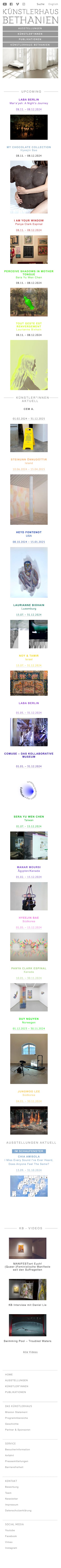 The Künstlerhaus Bethanien is an international cultural centre in Berlin. An artist-in-residence programme with workspaces for professional artists and exhibition spaces, it is dedicated to the advancement of contemporary visual arts. As part of its residency scheme, it aims to establish a lively dialogue between artists from various backgrounds and disciplines, and the public at large. To achieve these goals, the Künstlerhaus Bethanien organises a wide range of events ranging from monthly exhibition openings to private and public studio visits (“Open Studios”). The focus of its manifold missions is the International Studio Programme, where artists from around the world conceive and present new projects with the help of its team. The Künstlerhaus Bethanien continually strives to expand its international network by securing new partnerships.