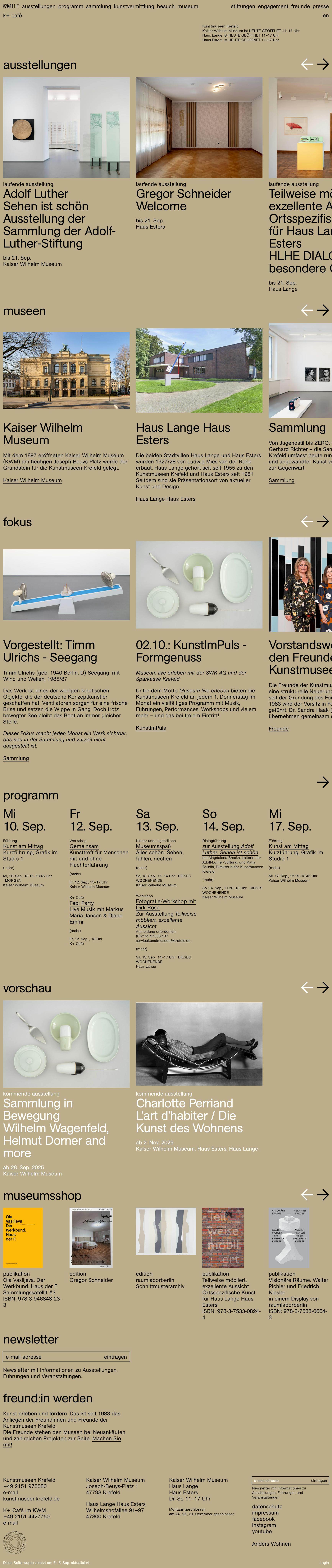 With their three locations—the Kaiser Wilhelm Museum in the center of town and the modern villas Haus Lange and Haus Esters in the Bockum residential area, the Kunstmuseen Krefeld represent an ideal forum for a program dedicated to the encounter of fine and applied arts.
