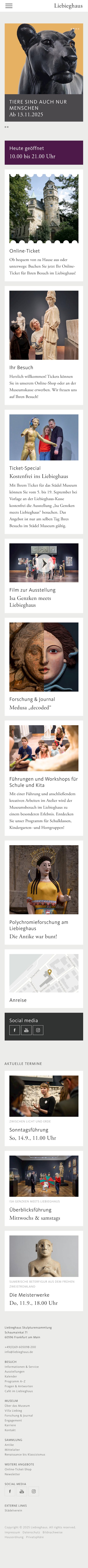 Surrounded by one of Frankfurt’s most beautiful gardens, the Liebieghaus is home to a superb collection of some 3,000 sculptures dating from ancient Egypt to Neoclassicism. It is one of the world’s most prominent museums specializing in sculpture.