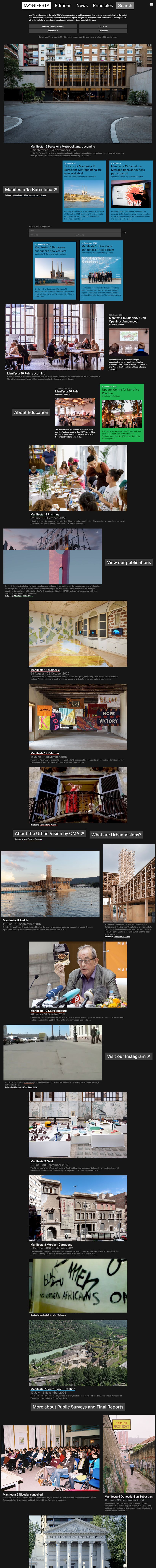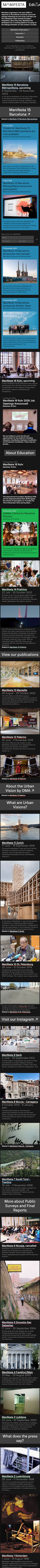 Manifesta is the European Nomadic Biennial, changing locations with Europe for each edition. In its 30 years of existence, Manifesta has become one of the most influential biennials in the world. Every two years, Manifesta takes place in a new European Host City, exploring the local, cultural, urban and environmental conditions while re-imagining with local citizens and communities how we live, work and see our future in Europe. After 30 years, Manifesta has transformed the very essence of its model, from being a biennial of contemporary art and a producer of exhibitions to an interdisciplinary platform of co-creation, incorporating artistic creativity and social commitment for social, urban and cultural change. This new model of Manifesta, closely related to our changing society, functions both as a base to experiment with artistic practices, and as an incubator for long-term sustainable interventions in each host city.