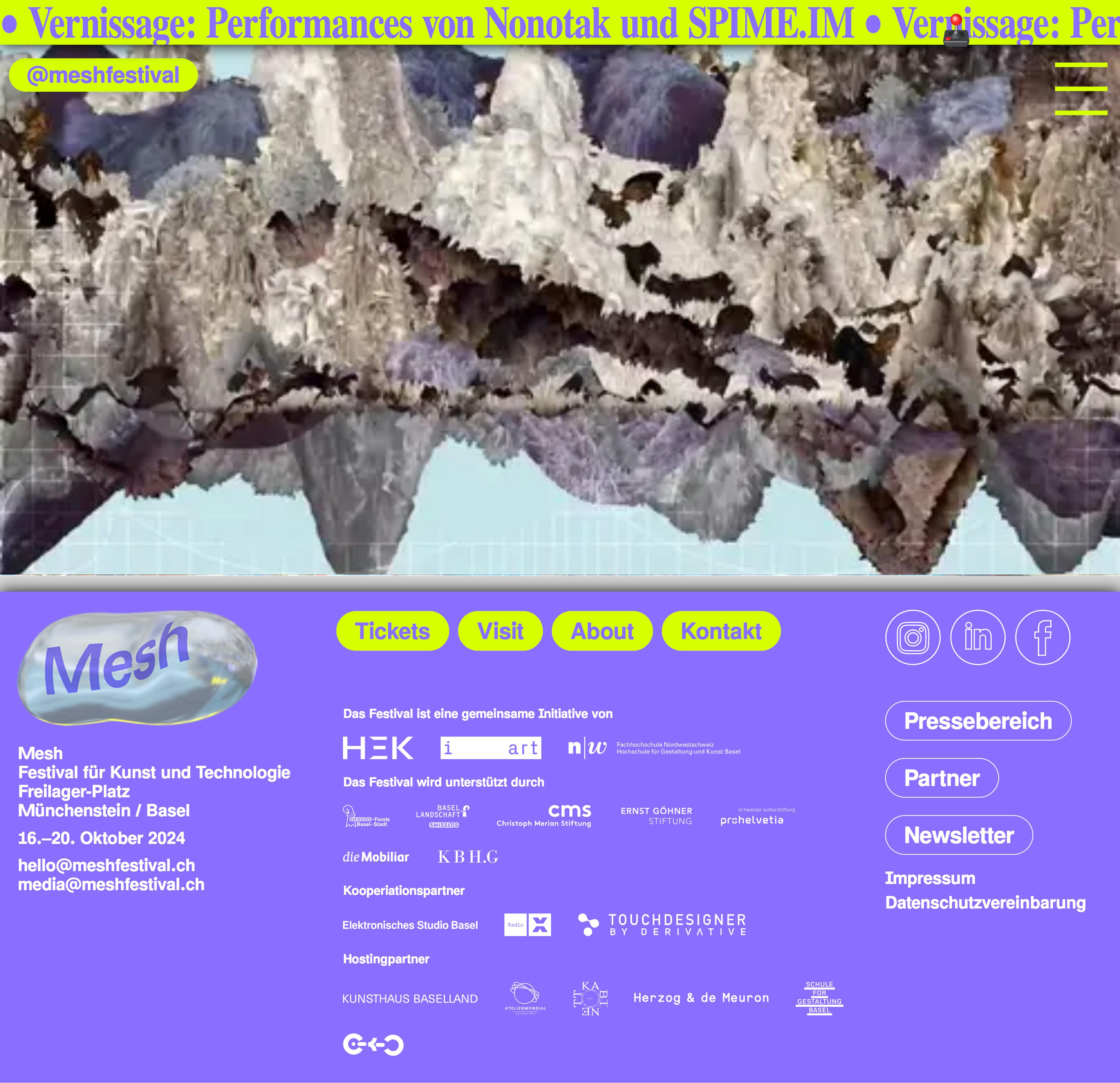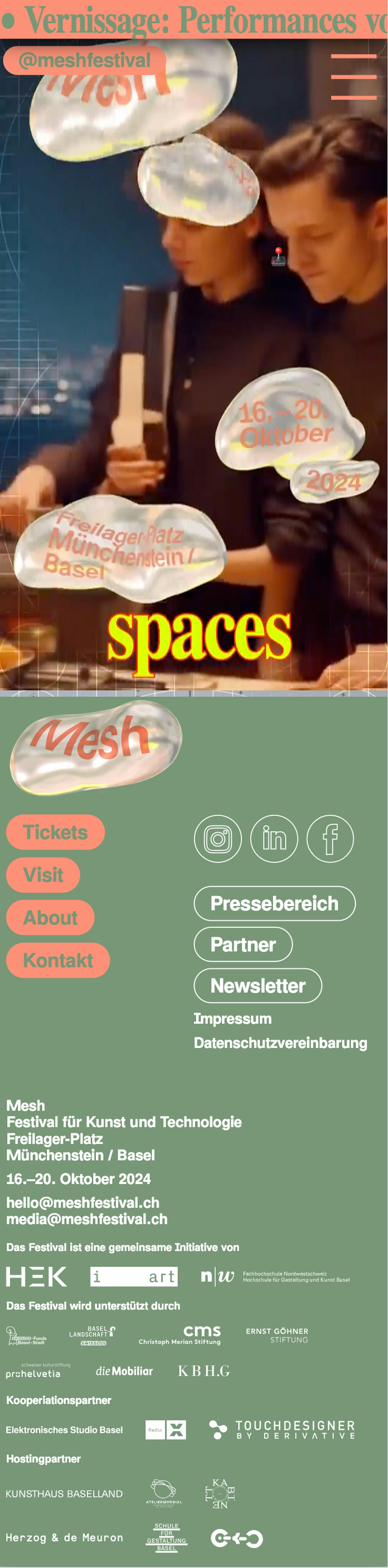 Mesh is a new festival for digital art and technology. The first edition will take place from October 16-20, 2024 around the Freilager-Platz in Basel and Münchenstein. With the rapid technological developments of recent years (such as artificial intelligence, mixed reality or robotics), artists are opening up new opportunities to realize their ideas. They work closely with technologists and scientists to conceive and realize their works. What does this collaboration look like? How does technology shape art? Or vice versa: How is technology driven forward by artistic work? Mesh addresses these questions and illustrates them using impressive artistic works. It addresses social and societal contexts and shows various connections between culture, education and industry.