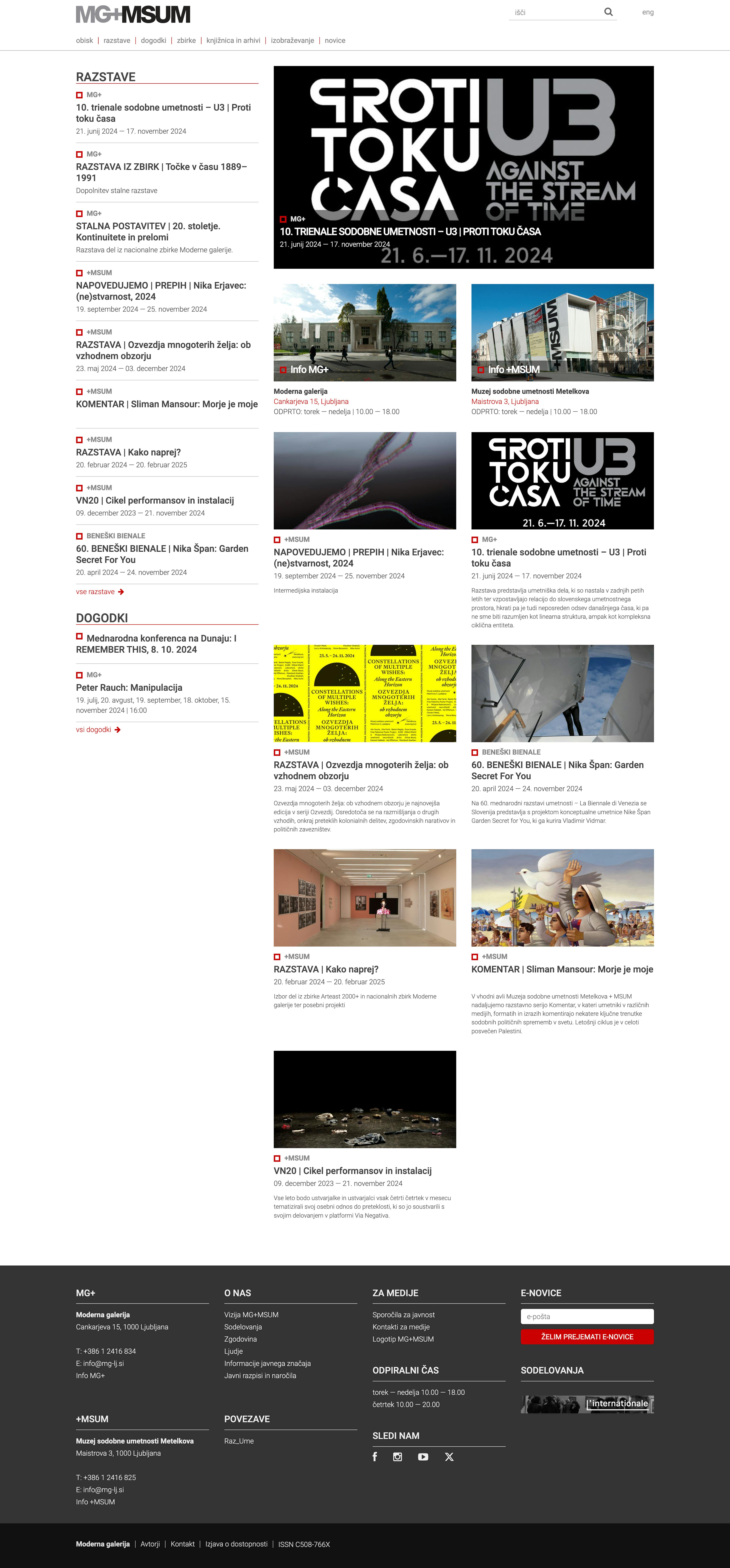Moderna galerija is a national museum that works, in accordance with its mission, in the fields of modern and contemporary art. It was founded in 1947 as a museum of modern art. With Slovenia's independence in 1991, Moderna galerija became the principal national institution of modern and contemporary art and an increasingly active link between the local and the international, in particular Central and Eastern European, contexts. During the transition following the downfall of the Communist regime, Moderna galerija suffered financial problems and personnel shortage. Today's vision of Moderna galerija is based on its history from the founding to the disintegration of the former Yugoslavia and the downfall of Socialism, on the strong experience of the Balkan wars, the transition period and critical awareness of the increasing globalisation processes. The concept of museum advocated by Moderna galerija follows its own way and resists the existing hegemonic models. In the crucial period of the 1990's, Moderna galerija refused to become a postmodern museum of sensations and intense experiences; on the threshold of the new millennium it fairly clearly developed the concept of an art museum that advocates the plurality of narratives and priorities of local spaces that intend to enter equal dialogues with other spaces only with their own symbolic capital.