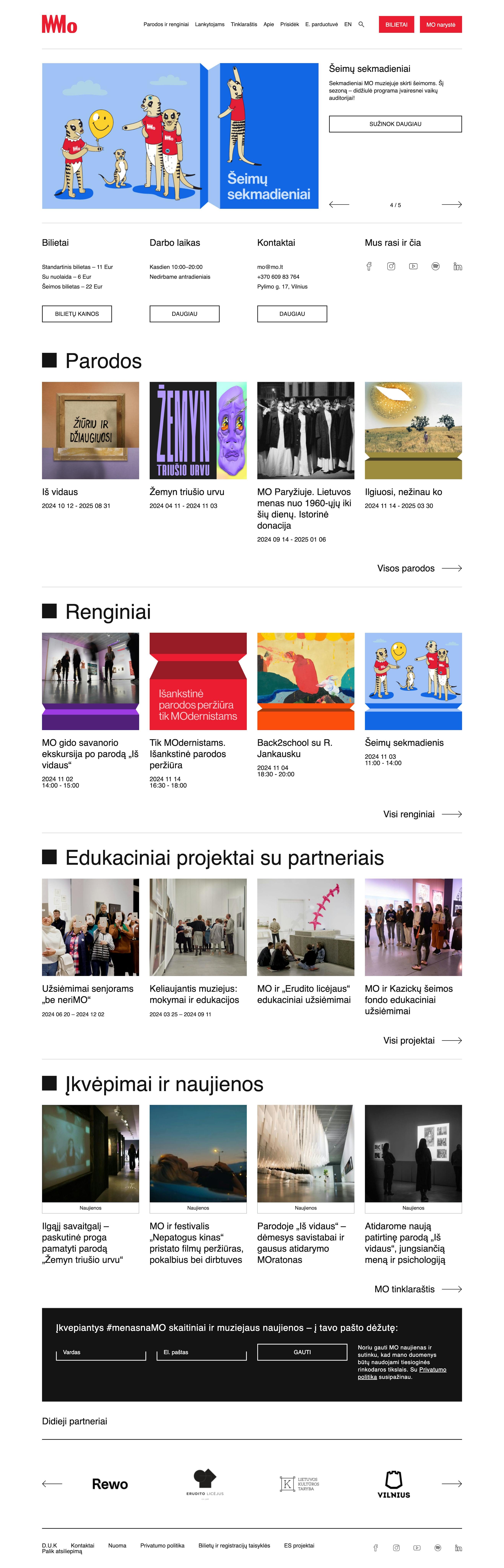MO Museum, a personal initiative of Lithuanian scientists and philanthropists Danguolė and Viktoras Butkus, functioned as an art museum without walls for close to ten years. The collection of around 6 000 modern and contemporary pieces contains major Lithuanian artworks from the 1960s to this day. From October 18th, 2018 MO has become an excellent place to spend free time. MO invites visitors to attend exhibitions, film screenings, educational activities, concerts and events geared to all age groups. One of MO’s goals is to create an active community of MOdernists who support the idea of MO and want to help create a new kind of museum – together!