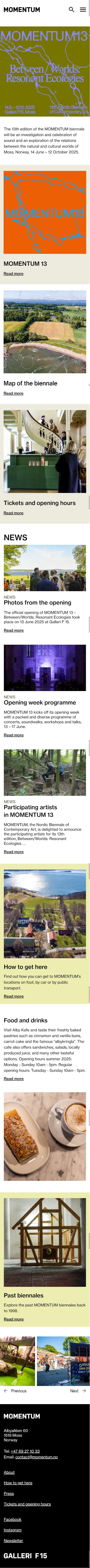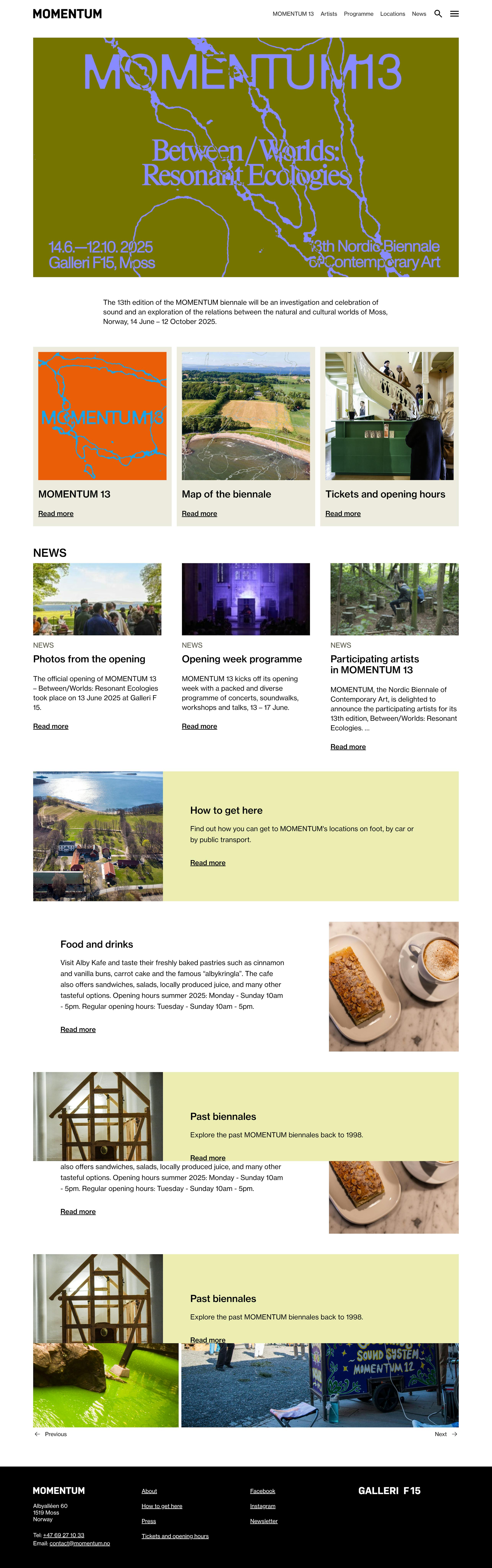 MOMENTUM – Nordic Biennale Of Contemporary Art was established in 1998 and is organised and produced by Galleri F 15 in Moss, Norway. For over two decades, MOMENTUM has consistently supported compelling curatorial vision and operated as a platform for exploring the exhibition format, both in the Nordic context and with an international perspective.