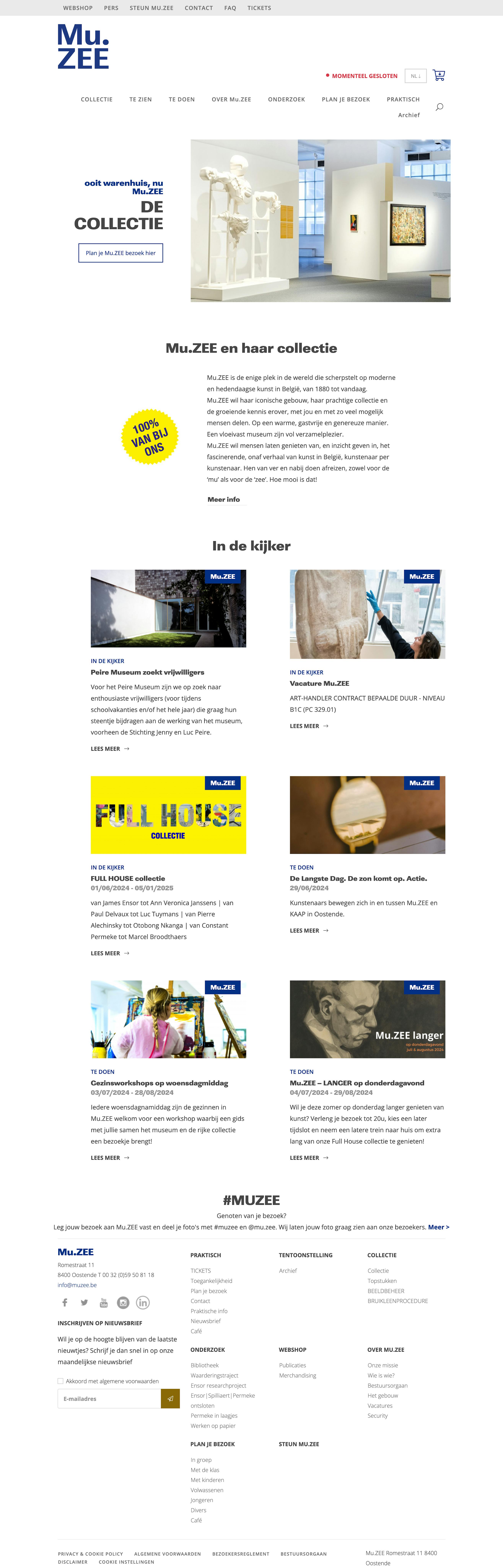 Mu.ZEE exhibits, collects, manages, digitises and studies visual arts from the 19th century to the present day. The museum affiliates its unique collection of exclusive Belgian art with the international arts sector and reveals the links between modern and contemporary art.