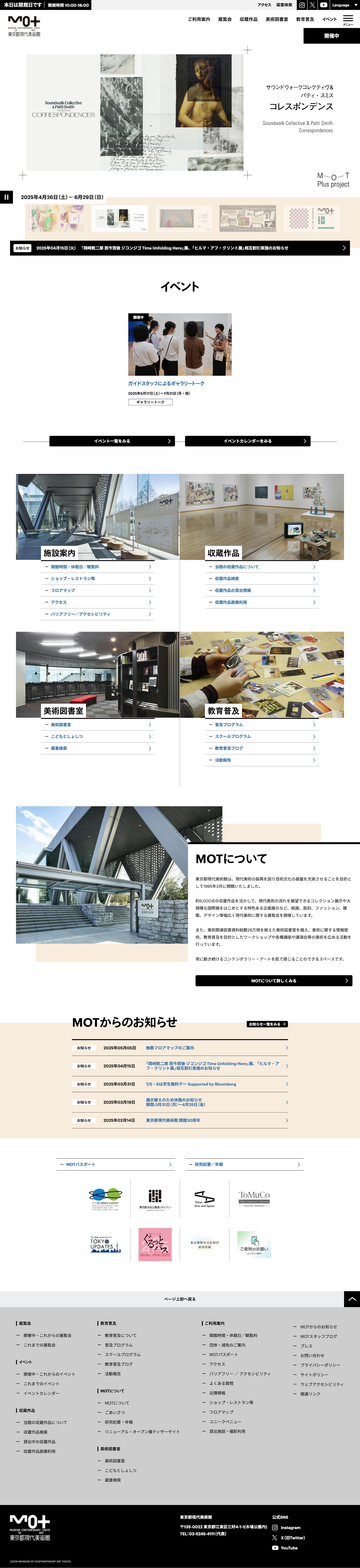 The Museum of Contemporary Art Tokyo was opened in March, 1995 in Kiba Park, to the East of Tokyo, as a center for the systematic study, collection, preservation and display of contemporary art, focusing primarily on postwar Japanese art but encompassing a wide range of subjects from both here and abroad. Prior to this there had been no single institute in Tokyo that dealt comprehensively with contemporary art and a need had long been felt for the establishment of a facility to trace the various trends in the field.
