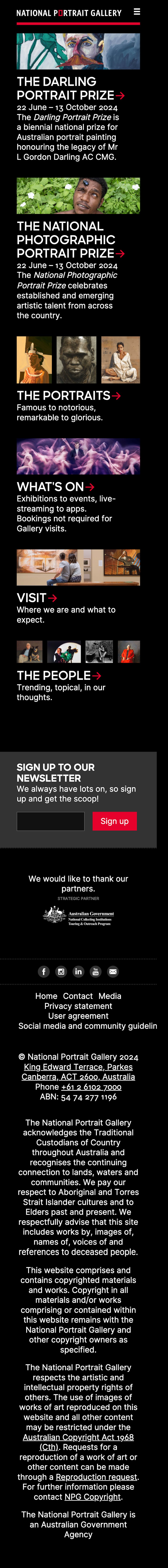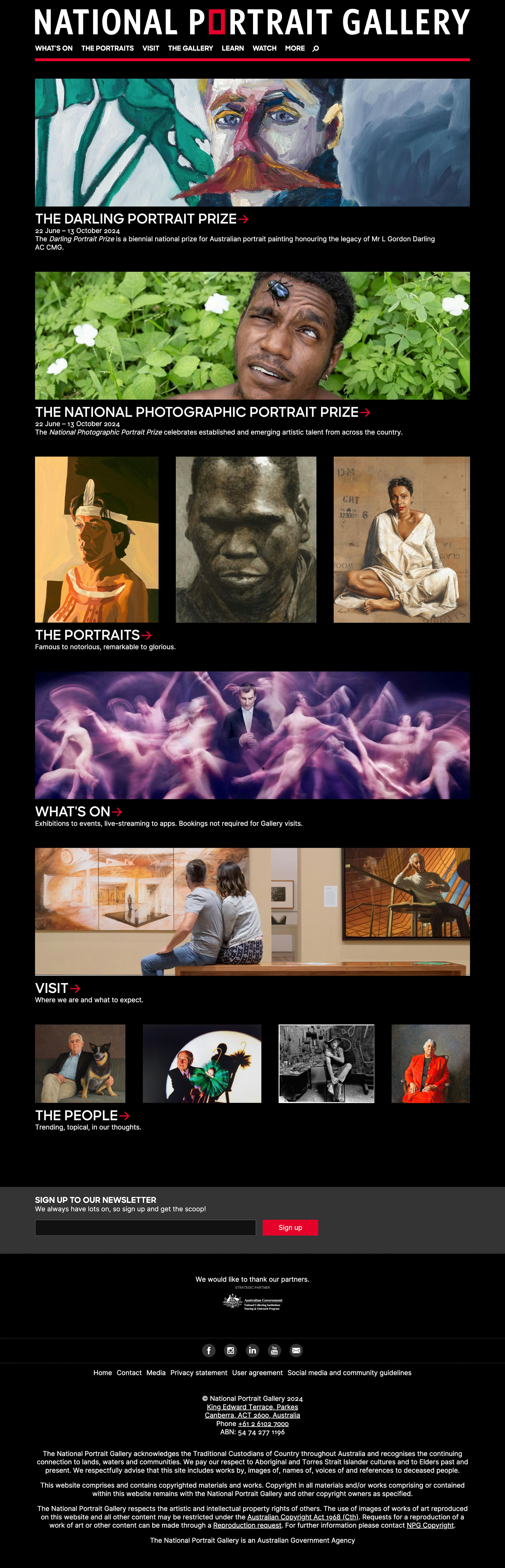 The National Portrait Gallery’s role is to: develop, preserve, maintain and promote a national collection of portraits and other works of art; develop and engage a national audience for the collection, exhibitions, education, research, publications, and public and online programs. We inspire people, communities and the nation through portraiture. We are bold and adventurous in the work we do and the art we share. We champion creativity across our work.
