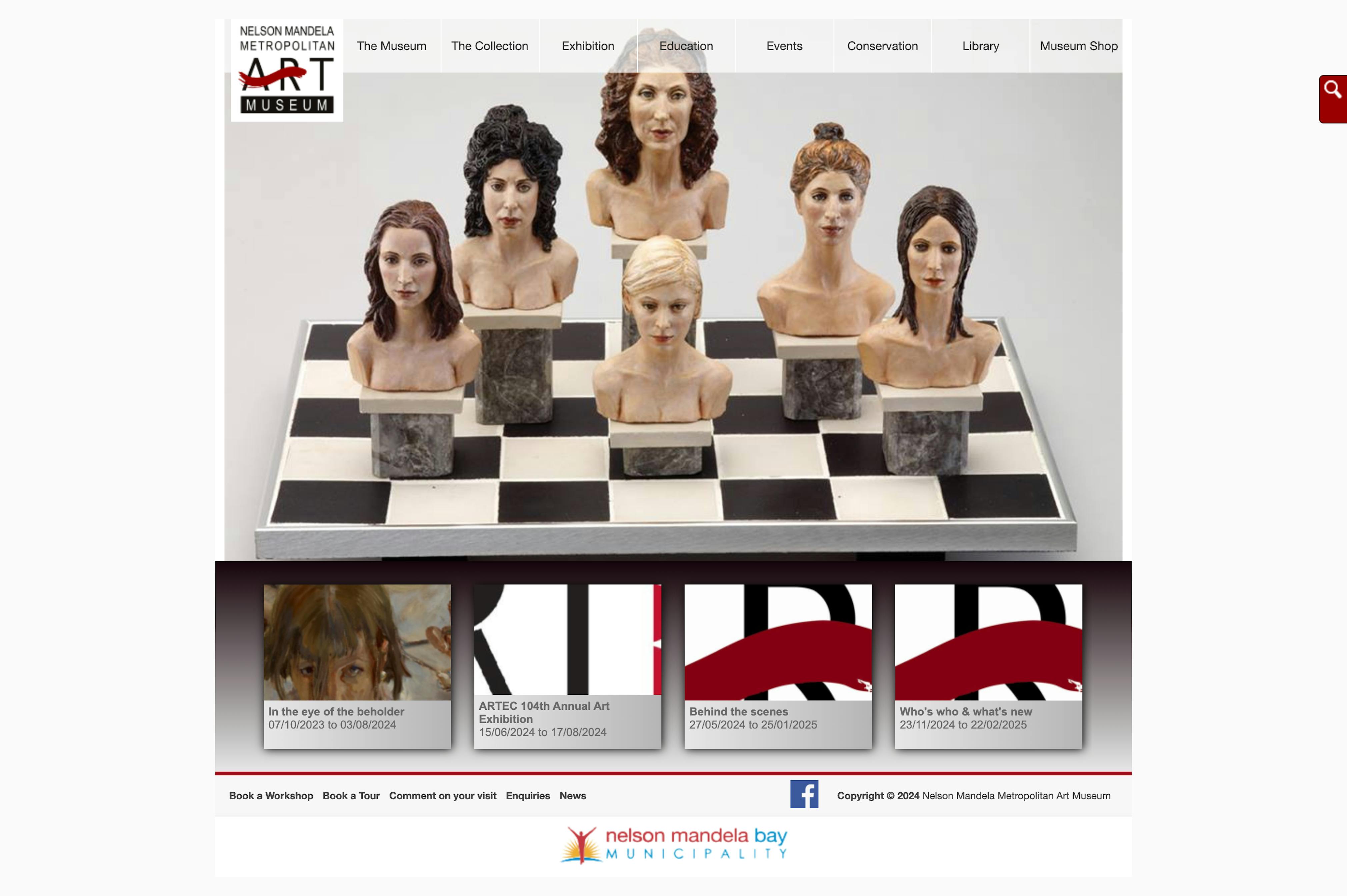 The Nelson Mandela Metropolitan Art Museum is located at St George’s Park, on the corner of Rink Street and Park Drive. It is home to a comprehensive collection of South African art and craft and specializes in the art of the Eastern Cape Province. There are three exhibition halls that are re-hung throughout the year to accommodate our collections as well as our programme of special exhibitions.