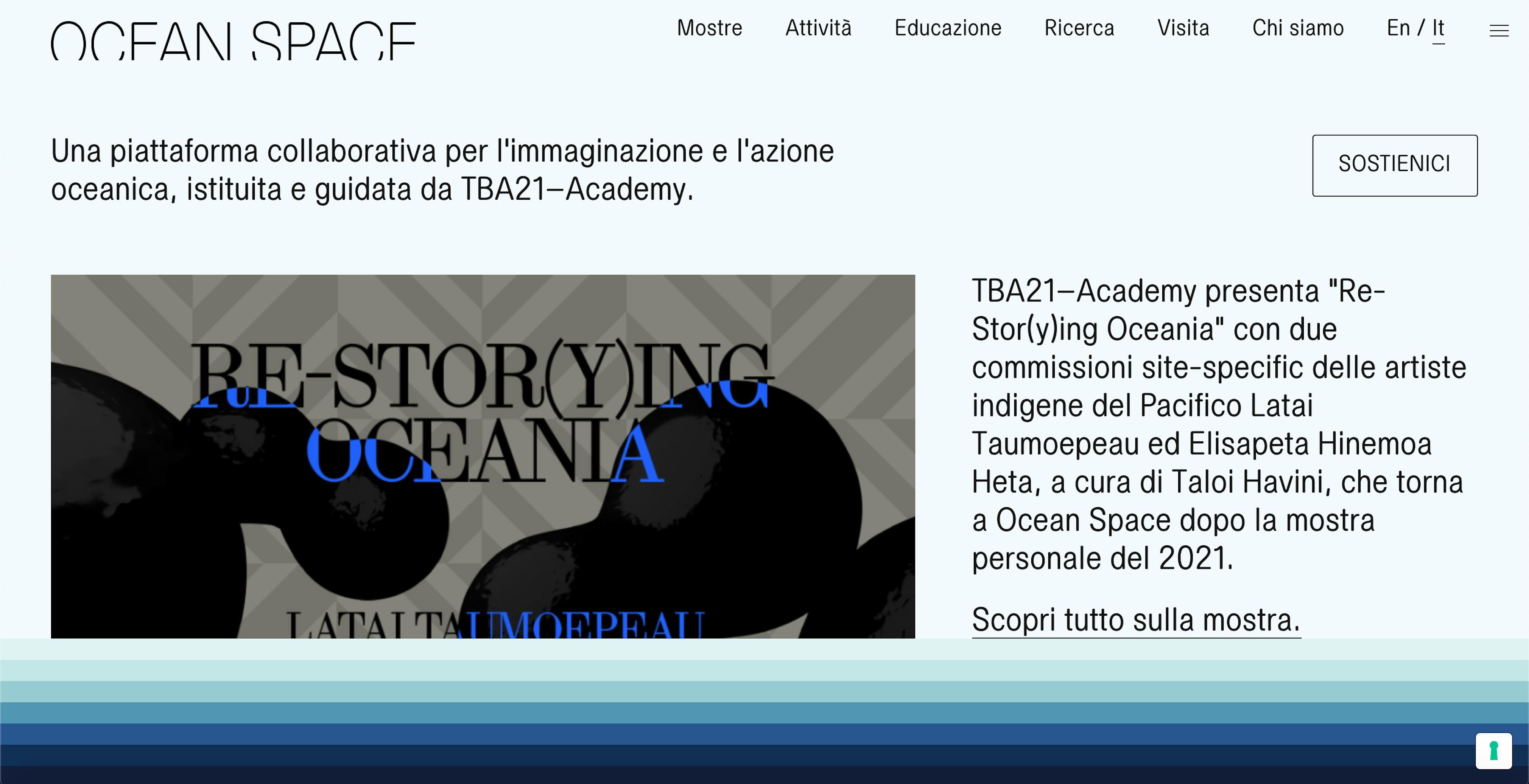 Located in the Church of San Lorenzo in Venice, Ocean Space is a planetary center for exhibitions, research and public programs catalyzing critical ocean literacy, collaborative research, and environmental advocacy through the arts. Established and led by TBA21–Academy and building on its expansive work, this embassy for the Ocean fosters wonder, engagement, and collective action. Ocean Space opened to the public in 2019 with the exhibition “Moving Off the Land II” by Joan Jonas, having been largely closed to the public for over 100 years and after extensive renovations, which were finished in early 2020. Ocean Space operates an annual program and is open to the public from spring to autumn.