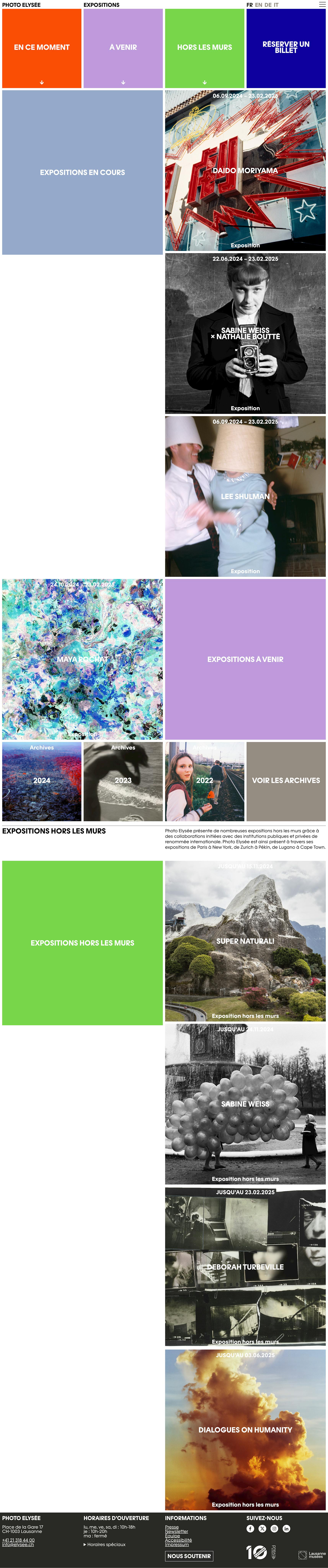 Photo Elysée is one of the most important museums entirely dedicated to the photographic medium. Each year, it produces demanding exhibitions, distributes reference editorial content, and conceives innovative events and offer events open to all. Since its creation in 1985 as a “museum for photography”, Photo Elysée has been questioning the permanent reinvention of the medium through the great figures who have marked its history by imagining new ways of seeing or making people see, while revealing in a privileged way the emerging photography which, through unseen views, bears witness to the world of today and prefigures that of tomorrow. In other words: to cover all the subjects of photography, to discover them sometimes, and above all to make them rediscovered.