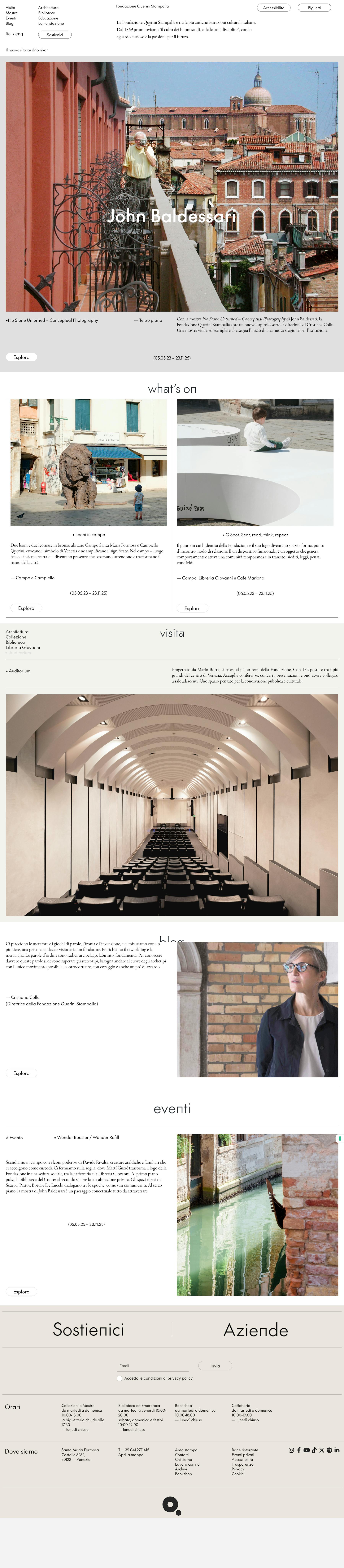 The Querini Stampalia Foundation is among the oldest Italian cultural institutions. Since 1869 we have promoted “the cult of good studies and useful disciplines”, with a curious gaze and a passion for the future. This remains the Fondazione’s mission: to be a place of research and learning, of meeting and relating, of personal growth and the spread of knowledge.