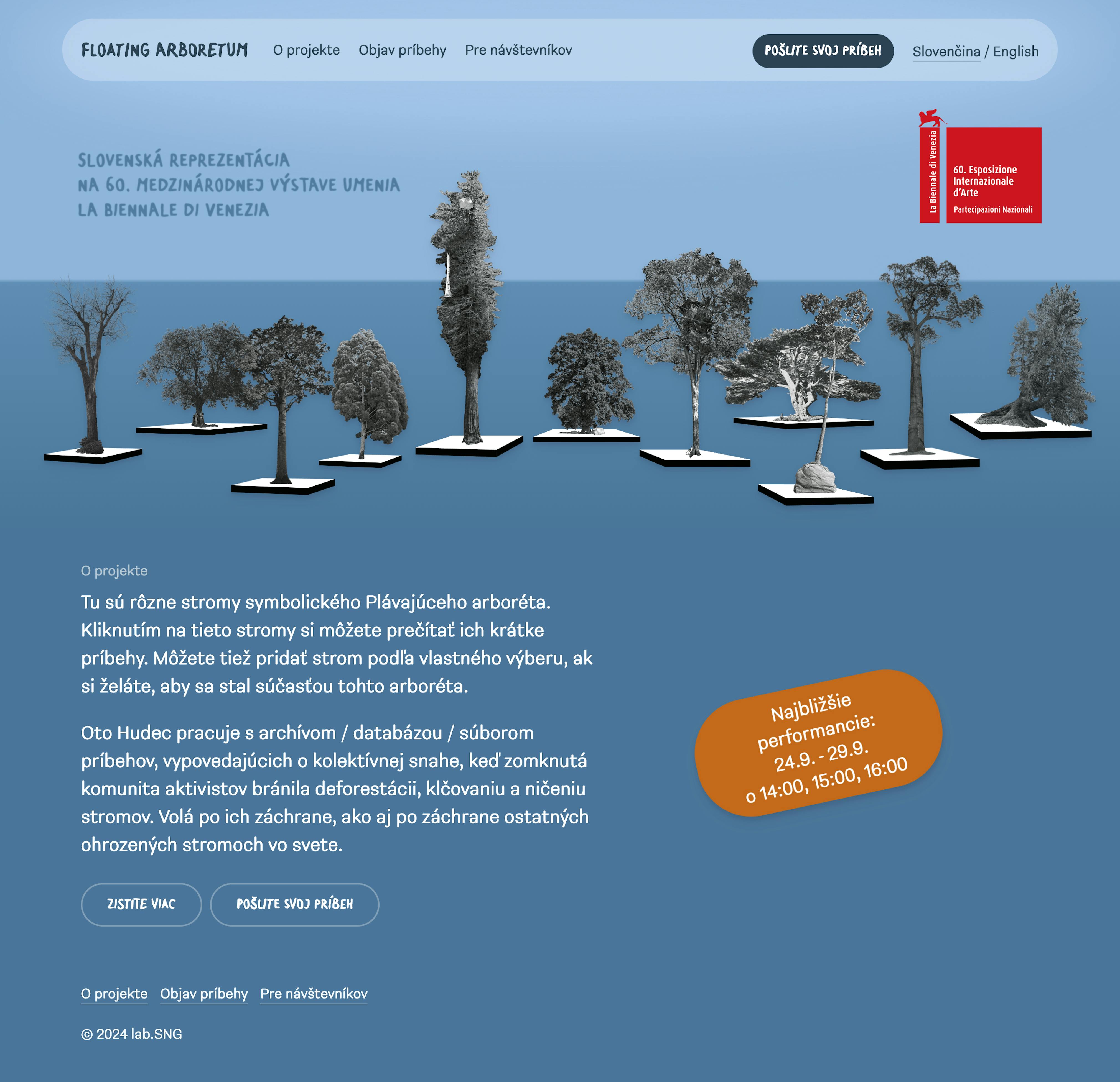 Artist Oto Hudec works with an archive/database/file of stories, telling of a collective effort when a united community of activists prevented deforestation and the destruction of trees. He calls for their rescue, as well as for the rescue of other endangered trees in the world. He contemplates an arboretum, a symbolic utopian place, a sanctuary for trees threatened by human expansion and extractivism. The project is an imaginative glimpse into a dystopian future in which we select and save trees by moving them to a safe (fictional) arboretum. We believe that Floating Arboretum's stories can spark transformative imagination, and that they can be inspirational in our everyday lives.