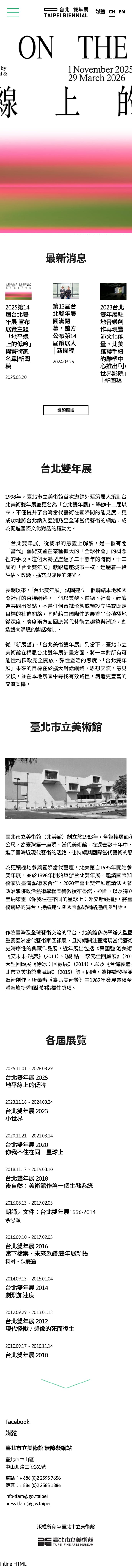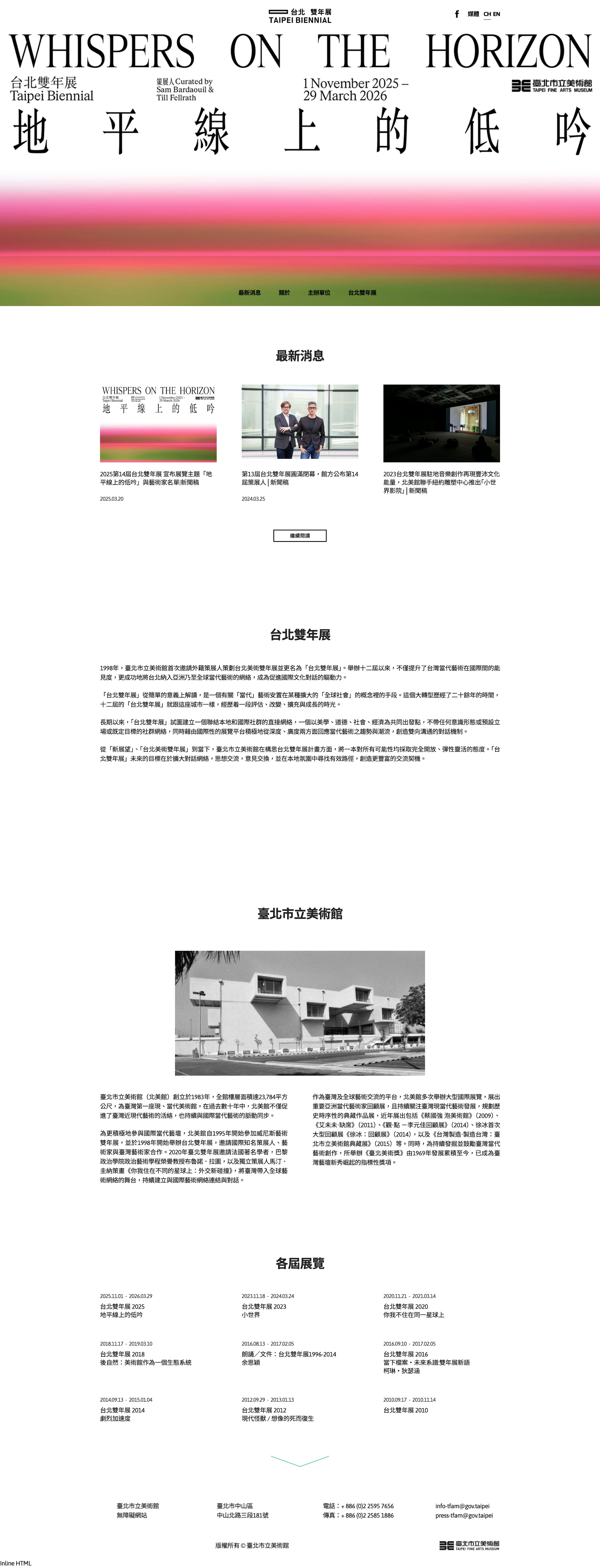 The Taipei Biennial is the most important exhibition for promoting contemporary art held by the Taipei Fine Arts Museum.