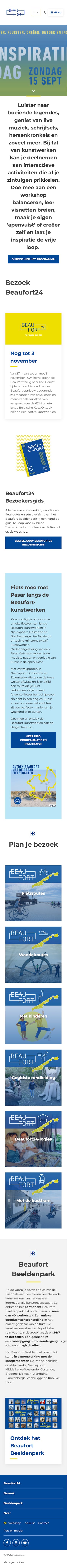 Beaufort is a triennial for contemporary art that has been taking place since 2003 along the sea walls, beaches and dunes of the Belgian coast. Throughout the previous editions of the Triennial by the Sea, the coastal municipalities purchased various artworks. These either remained at their original locations or were assigned a new venue. This is how the Beaufort Sculpture Park featuring 40 works of art in the public domain, was born. It is the largest open-air exhibition taking place in the unique scenery of the Coast.