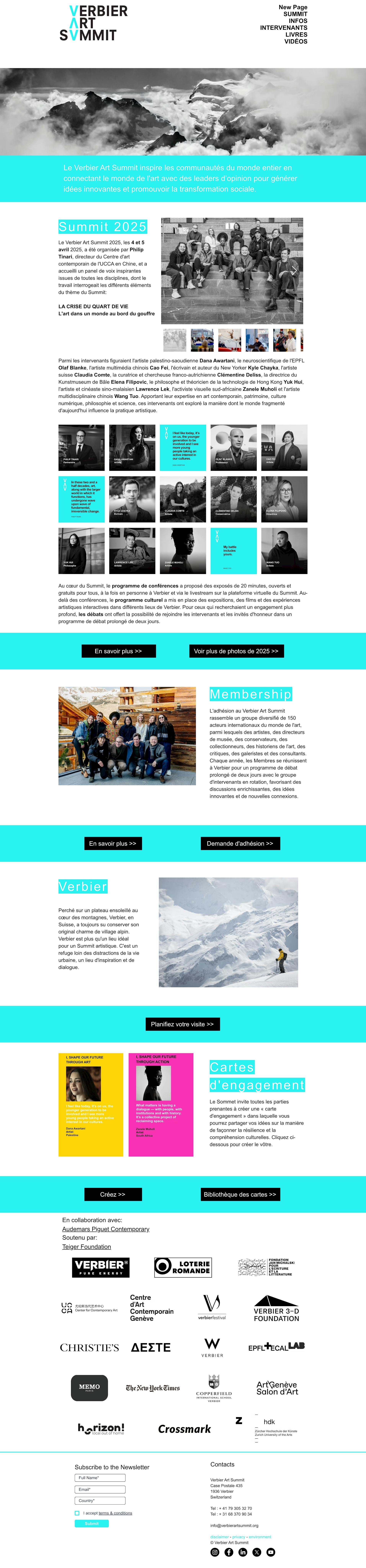 Over the past century, science, politics and business have shaped our world. In our current global society, it is time for art and culture to play a dominant role. At the start of each year, the non-profit Verbier Art Summit brings together innovative thinkers with influential artists to kick-off debates on important social issues. The international platform’s sole aim is to generate new ideas and drive social change through art.