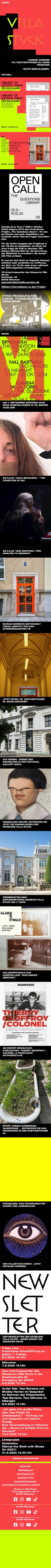 In 1897/98, the 34-year-old painter, graphic artist, and sculptor Franz von Stuck (1863-1928) built his extraordinary artist's villa, featuring private living and reception rooms as well as an artist's studio, on the Isar River Heights according to his own designs. The house is the supreme expression of the artist prince's life's Gesamtkunstwerk (total work of art). The vestibule, reception room, music room, staircase, and studio, designed down to the last detail by the artist himself, have been preserved as masterpieces of spatial art. The Villa Stuck embodies an architecture that leads directly into modern architecture.
